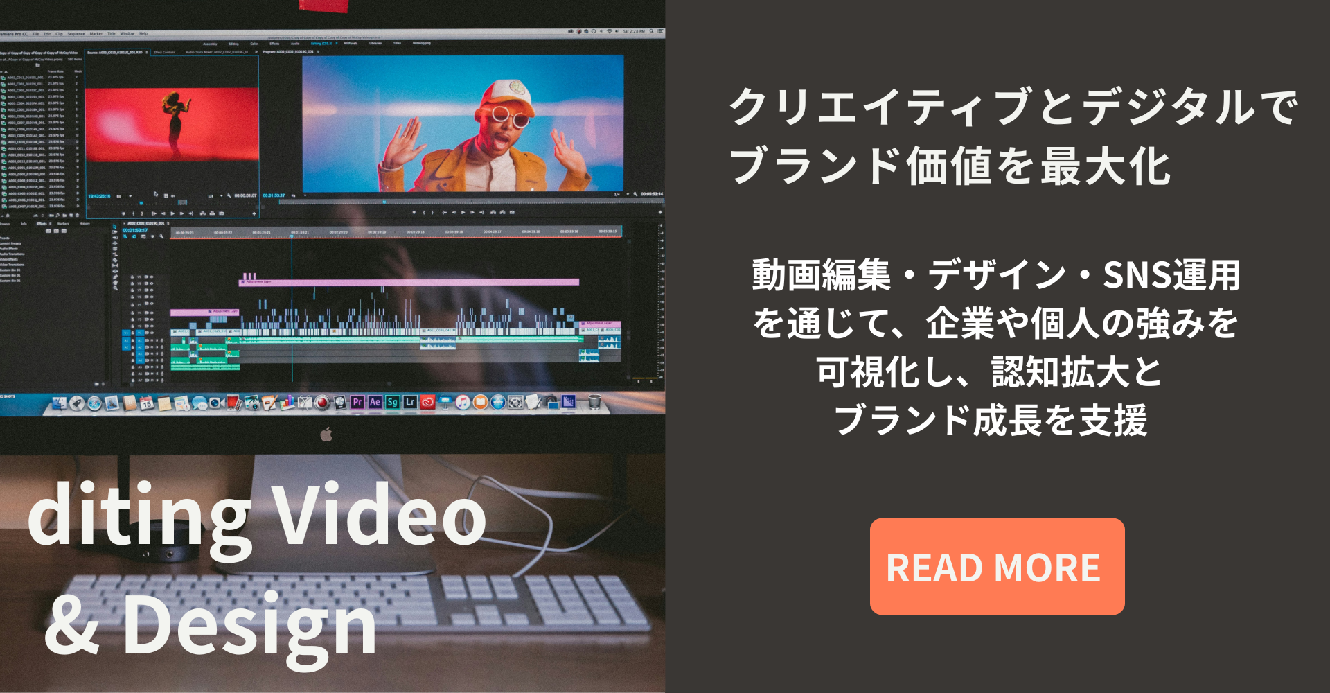 動画編集サービスを中心に、企画から仕上げまで幅広くサポートしています。
